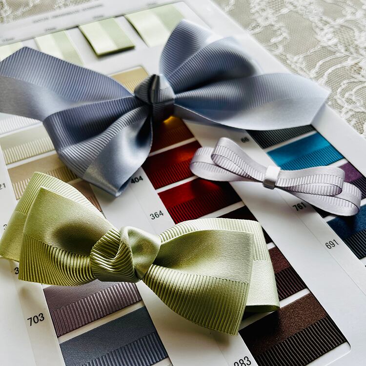 上質な艶を持つ両面サテンとグログランのコンビネーションリボンです。