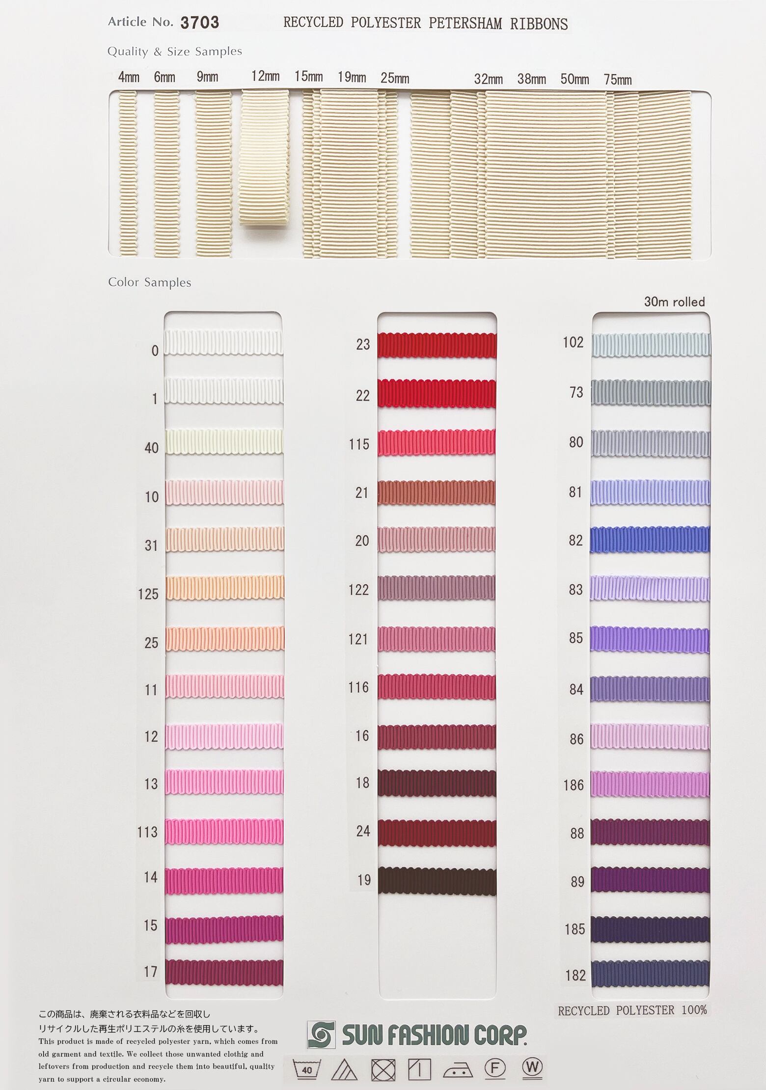 廃棄される衣料品や生産時に出た残反から作られたリサイクルポリエステル糸[RENU]を使ったペタシャムリボンです。