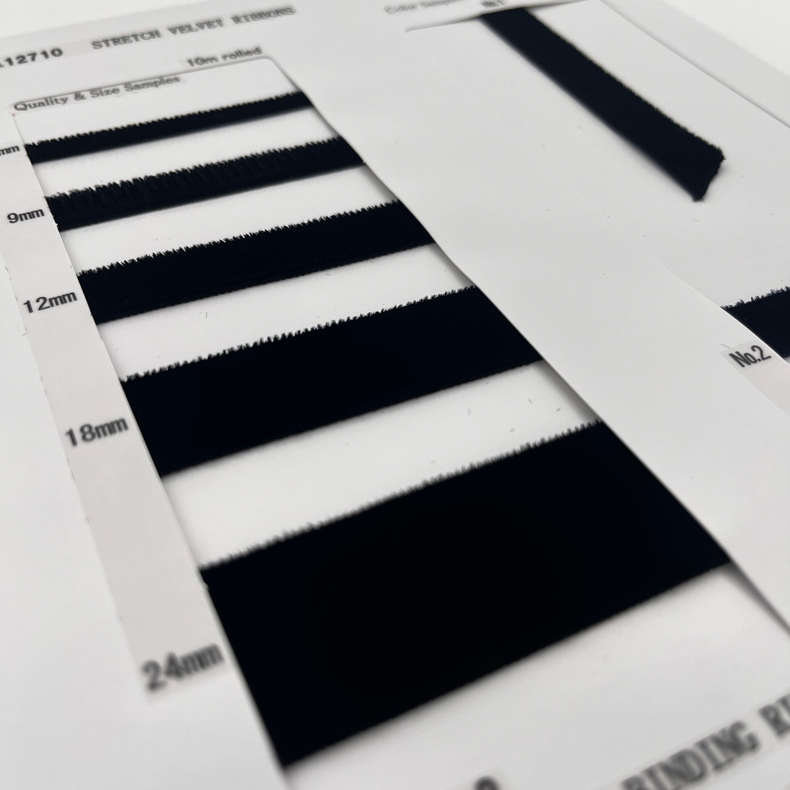 伸縮性を持つ、柔らかな片面ベルベットリボンです。